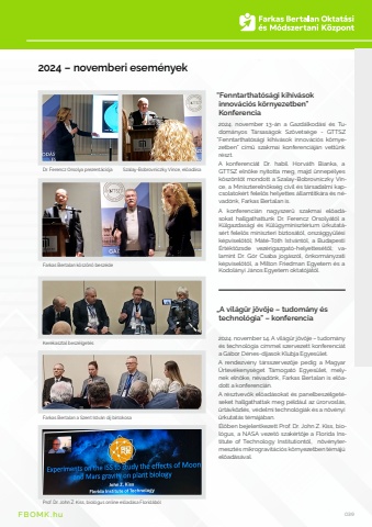 FBOMK.hu FBOMK.hu 039UJ TartalomProf. Dr. John Z. Kiss, biol%u00f3gus online el%u0151ad%u00e1sa Florid%u00e1b%u00f3lFarkas Bertalan k%u00f6sz%u00f6n%u0151 besz%u00e9deKerekasztal besz%u00e9lget%u00e9sFarkas Bertalan a Szent Istv%u00e1n d%u00edj birtokosa2024 %u2013 novemberi esem%u00e9nyekDr. Ferencz Orsolya prezent%u00e1ci%u00f3ja Szalay-Bobrovniczky Vince, el%u0151ad%u00e1sa%u201cFenntarthat%u00f3s%u00e1gi kih%u00edv%u00e1sok innov%u00e1ci%u00f3s k%u00f6rnyezetben%u201d Konferencia2024. november 13-%u00e1n a Gazd%u00e1lkod%u00e1si %u00e9s Tudom%u00e1nyos T%u00e1rsas%u00e1gok Sz%u00f6vets%u00e9ge - GTTSZ %u201cFenntarthat%u00f3s%u00e1gi kih%u00edv%u00e1sok innov%u00e1ci%u00f3s k%u00f6rnyezetben%u201d c%u00edm%u0171 szakmai konferenci%u00e1j%u00e1n vett%u00fcnk r%u00e9szt.A konferenci%u00e1t Dr. habil. Horv%u00e1th Bianka, a GTTSZ eln%u00f6ke nyitotta meg, majd %u00fcnnep%u00e9lyes k%u00f6sz%u00f6nt%u0151t mondott a Szalay-Bobrovniczky Vince, a Minisztereln%u00f6ks%u00e9g civil %u00e9s t%u00e1rsadalmi kapcsolatok%u00e9rt felel%u0151s helyettes %u00e1llamtitk%u00e1ra %u00e9s n%u00e9vad%u00f3nk, Farkas Bertalan is.A konferenci%u00e1n nagyszer%u0171 szakmai el%u0151ad%u00e1sokat hallgathattunk Dr. Ferencz Orsoly%u00e1t%u00f3l a K%u00fclgazdas%u00e1gi %u00e9s K%u00fcl%u00fcgyminiszt%u00e9rium %u0171rkutat%u00e1s%u00e9rt felel%u0151s miniszteri biztos%u00e1t%u00f3l, orsz%u00e1ggy%u0171l%u00e9si k%u00e9pvisel%u0151t%u0151l; M%u00e1t%u00e9-T%u00f3th Istv%u00e1nt%u00f3l, a Budapesti %u00c9rt%u00e9kt%u0151zsde vez%u00e9rigazgat%u00f3-helyettes%u00e9t%u0151l; valamint Dr. G%u00f3r Csaba jog%u00e1sz%u00f3l, %u00f6nkorm%u00e1nyzati k%u00e9pvisel%u0151t%u0151l, a Milton Friedman Egyetem %u00e9s a Kodol%u00e1nyi J%u00e1nos Egyetem oktat%u00f3j%u00e1t%u00f3l.%u201eA vil%u00e1g%u0171r j%u00f6v%u0151je %u2013 tudom%u00e1ny %u00e9s technol%u00f3gia%u201d %u2013 konferencia2024. november 14. A vil%u00e1g%u0171r j%u00f6v%u0151je %u2013 tudom%u00e1ny %u00e9s technol%u00f3gia c%u00edmmel szervezett konferenci%u00e1t a G%u00e1bor D%u00e9nes-d%u00edjasok Klubja Egyes%u00fclet.A rendezv%u00e9ny t%u00e1rsszervez%u0151je pedig a Magyar %u0170rtev%u00e9kenys%u00e9get T%u00e1mogat%u00f3 Egyes%u00fclet, melynek eln%u00f6ke, n%u00e9vad%u00f3nk, Farkas Bertalan is el%u0151adott a konferenci%u00e1n. A r%u00e9sztvev%u0151k el%u0151ad%u00e1sokat %u00e9s panelbesz%u00e9lget%u00e9seket hallgathattak meg p%u00e9ld%u00e1ul az %u0171rorvosl%u00e1s, %u0171rt%u00e1vk%u00f6zl%u00e9s, v%u00e9delmi technol%u00f3gi%u00e1k %u00e9s a n%u00f6v%u00e9nyi %u0171rkutat%u00e1s t%u00e9m%u00e1j%u00e1ban.%u00c9l%u0151ben bejelentkezett Prof. Dr. John Z. Kiss, biol%u00f3gus, a NASA vezet%u0151 szak%u00e9rt%u0151je a Florida Institute of Technology Institutiont%u00f3l, n%u00f6v%u00e9nytermeszt%u00e9s mikrogravit%u00e1ci%u00f3s k%u00f6rnyezetben t%u00e9m%u00e1j%u00fa el%u0151ad%u00e1s%u00e1val.
