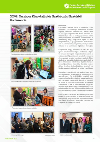 FBOMK.hu FBOMK.hu 047november 4.Ki%u00e1ll%u00edt%u00f3k%u00e9nt vett%u00fcnk r%u00e9szt a november 4-%u00e9n kezd%u0151d%u0151 XXVII. Orsz%u00e1gos K%u00f6zoktat%u00e1si %u00e9s Szakk%u00e9pz%u00e9si Szak%u00e9rt%u0151i Konferenci%u00e1n, amely id%u00e9n is az egyik legfontosabb hazai szakmai tal%u00e1lkoz%u00f3helye volt a pedag%u00f3gusoknak, int%u00e9zm%u00e9nyvezet%u0151knek %u00e9s oktat%u00e1si szak%u00e9rt%u0151knek. A rendezv%u00e9ny c%u00e9lja, hogy teret adjon a tud%u00e1smegoszt%u00e1snak, a j%u00f3 gyakorlatok bemutat%u00e1s%u00e1nak %u00e9s azoknak az %u00faj ir%u00e1nyoknak, amelyek a k%u00f6zoktat%u00e1s %u00e9s a szakk%u00e9pz%u00e9s fejl%u0151d%u00e9s%u00e9t form%u00e1lj%u00e1k.K%u00f6zpontunk nagy %u00f6r%u00f6mmel mutatta be leg%u00fajabb oktat%u00e1stechnol%u00f3giai eszk%u00f6zeit, digit%u00e1lis tanul%u00e1st t%u00e1mogat%u00f3 megold%u00e1sait %u00e9s azokat a m%u00f3dszertani fejleszt%u00e9seket, amelyek a modern, %u00e9lm%u00e9nyalap%u00fa tanul%u00e1s ir%u00e1ny%u00e1ba mutatnak. Standunkn%u00e1l a l%u00e1togat%u00f3k betekint%u00e9st nyerhettek a j%u00f6v%u0151 oktat%u00e1s%u00e1ba: robotik%u00e1ba, digit%u00e1lis kompetenciafejleszt%u00e9sbe, interakt%u00edv tanul%u00e1si eszk%u00f6z%u00f6kbe %u00e9s olyan technol%u00f3gi%u00e1kba, amelyek val%u00f3s t%u00e1mogat%u00e1st ny%u00fajtanak az iskolai munk%u00e1ban.Kiemelten inspir%u00e1l%u00f3 volt sz%u00e1munkra, hogy en -nyi elk%u00f6telezett szakemberrel tal%u00e1lkozhattunk szem%u00e9lyesen. Az %u00e9rdekl%u0151d%u0151k r%u00e9sz%u00e9r%u0151l sz%u00e1mos %u00e9rt%u00e9kes k%u00e9rd%u00e9s, %u00f6tlet %u00e9s tapasztalat %u00e9rkezett, amelyek meger%u0151s%u00edtik benn%u00fcnk, mennyire fontos a folyamatos p%u00e1rbesz%u00e9d az oktat%u00e1s szerepl%u0151ivel. Ezek a visszajelz%u00e9sek nagyban hozz%u00e1j%u00e1rulnak ahhoz, hogy tov%u00e1bbfejlessz%u00fck szolg%u00e1ltat%u00e1sainkat %u00e9s m%u00e9g hat%u00e9konyabban tudjuk t%u00e1mogatni a pedag%u00f3gusok mindennapi munk%u00e1j%u00e1t.K%u00f6sz%u00f6nj%u00fck mindenkinek, aki megl%u00e1togatta standunkat %u2014 sz%u00e1munkra ez az esem%u00e9ny ism%u00e9t bebizony%u00edtotta, hogy az oktat%u00e1s fejl%u0151d%u00e9s%u00e9%u00e9rt tenni k%u00f6z%u00f6ss%u00e9gi er%u0151fesz%u00edt%u00e9s, amelyben minden besz%u00e9lget%u00e9s %u00e9s tal%u00e1lkoz%u00e1s sz%u00e1m%u00edt.UJ TartalomTerm%u00e9szettudom%u00e1nyos %u00e9s robotikai standjainkWorkshop k%u00f6z%u00f6ns%u00e9ge Ki%u00e1ll%u00edt%u00f3 munkat%u00e1rsainkFontosak a hagyom%u00e1nyos oktat%u00e1si eszk%u00f6z%u00f6kNagy %u00e9rdekl%u0151d%u00e9s az innovat%u00edv oktat%u00e1si eszk%u00f6z%u00f6k ir%u00e1ntXXVII. Orsz%u00e1gos K%u00f6zoktat%u00e1si %u00e9s Szakk%u00e9pz%u00e9si Szak%u00e9rt%u0151i KonferenciaFot%u00f3: Suliszerviz, Sz%u00e1nt%u00f3